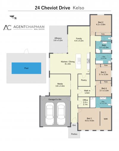 Positioned in a quiet Kelso setting, this modern four-bedroom home delivers a well-balanced design with multiple living zones, quality finishes and seamless indoor–outdoor flow. With reverse cycle ducted comfort throughout, a salt chlorinated pool and generous entertaining spaces, this residence offers relaxed everyday living with impressive functionality.