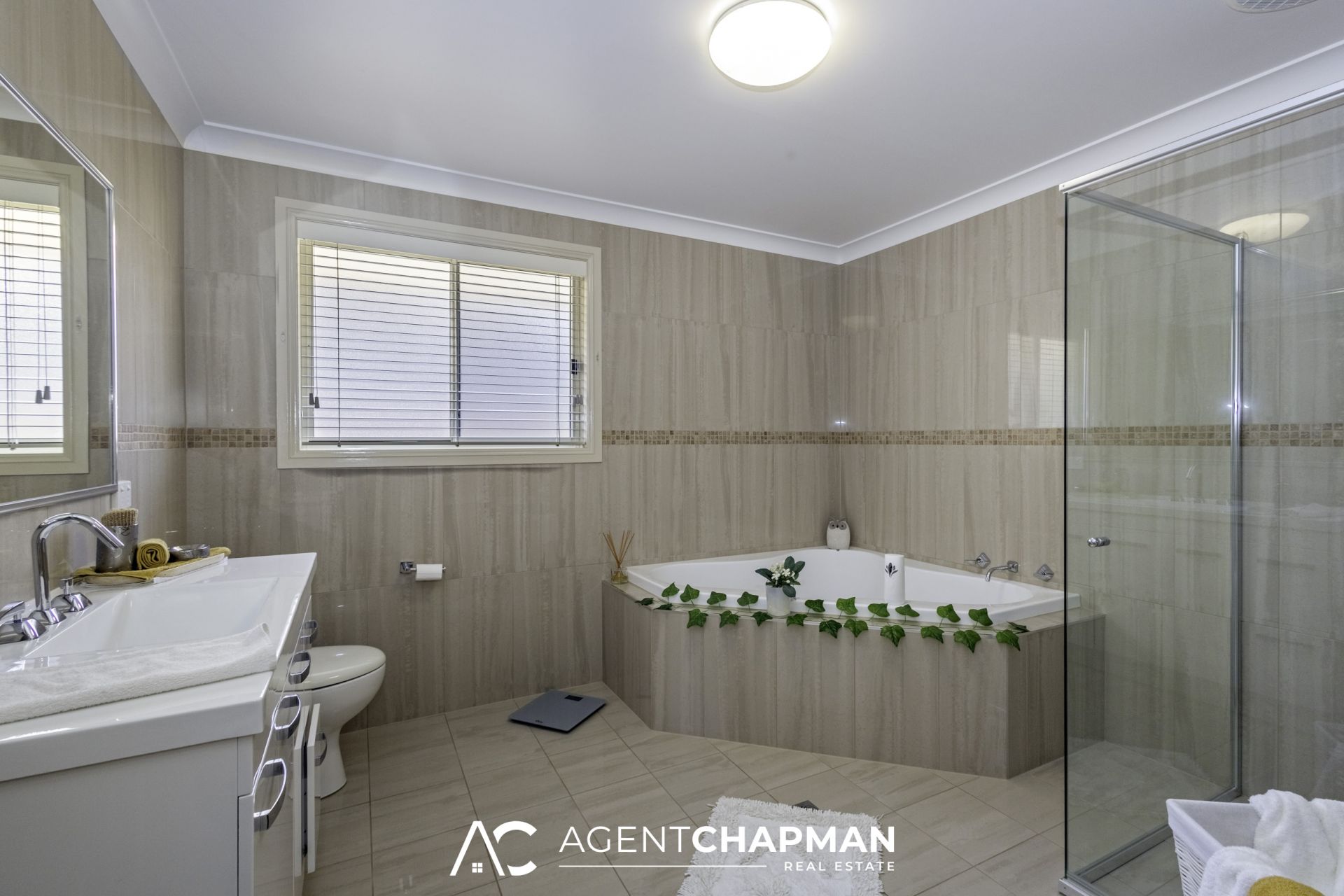 – Main bathroom is generous in size and includes floor to ceiling tiles, corner bath, shower, toilet and vanity.