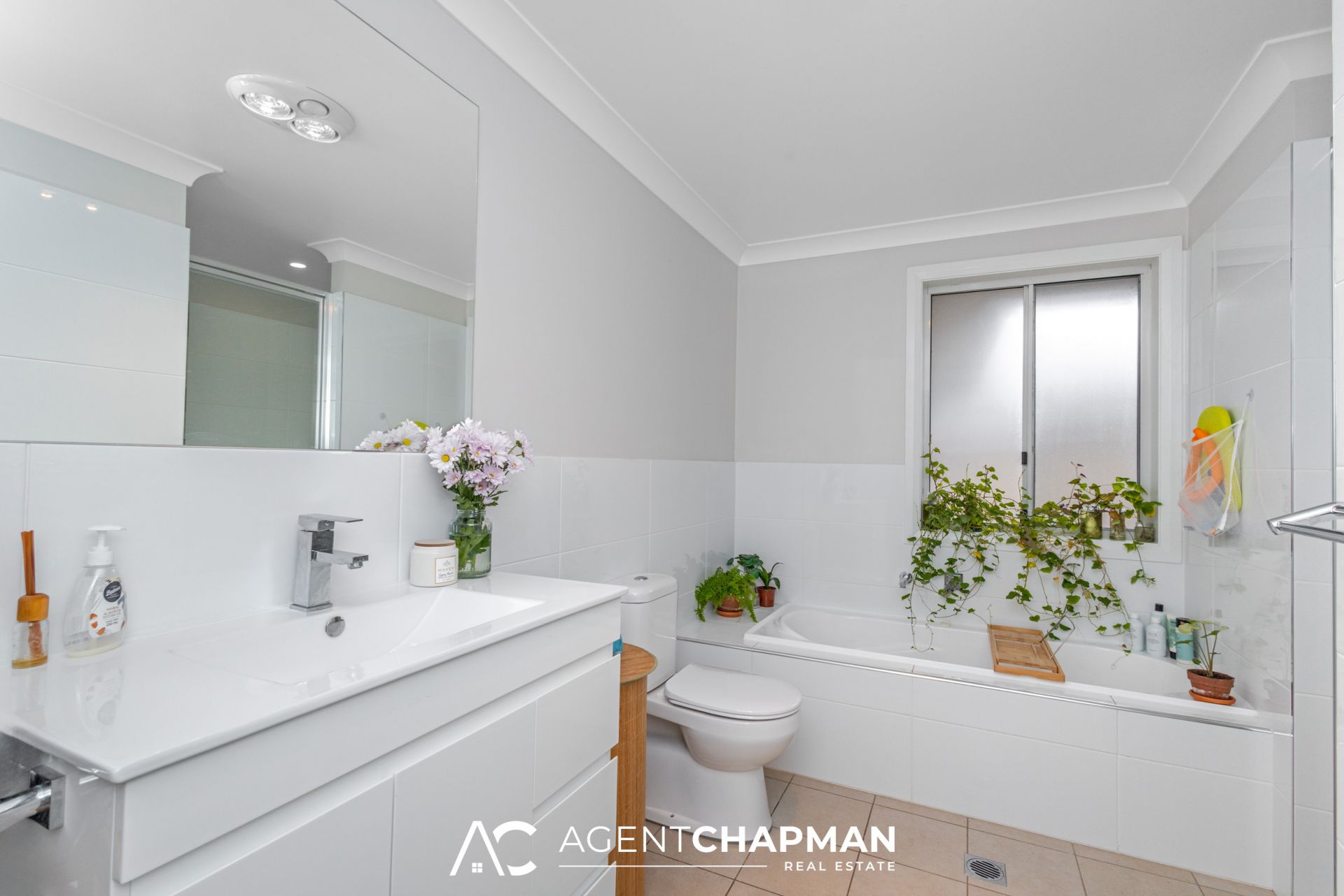 – Spacious main bathroom with bath, large shower, vanity and toilet.