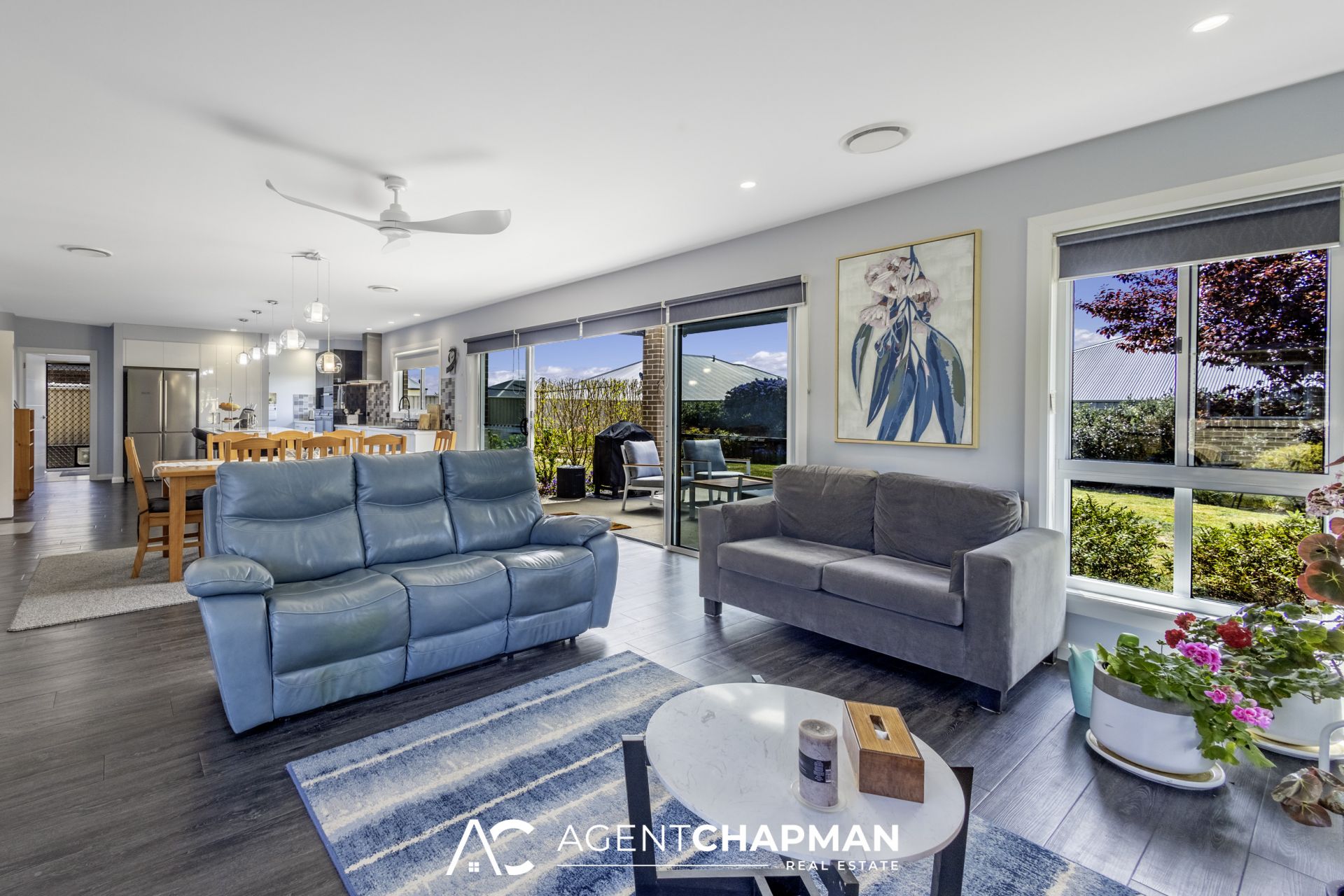 – Light-filled open-plan living/dining/kitchen area with ceiling fan, study nook and access to the entertaining area and private courtyard.