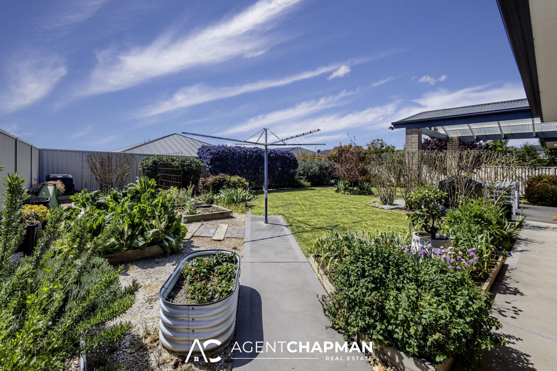 – North-facing, enclosed backyard with undercover entertaining area and established gardens, shrubs and trees.