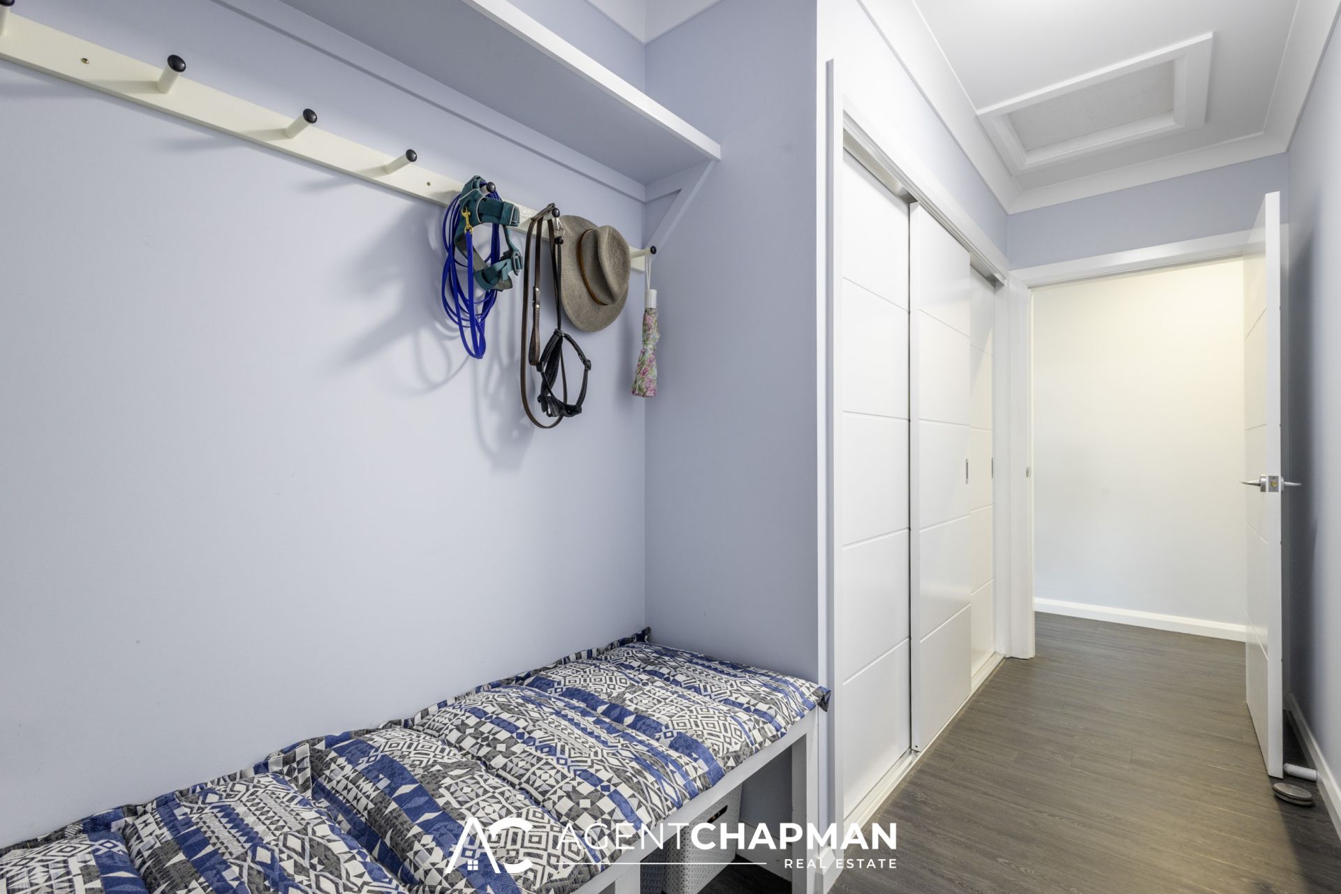 – Convenient storage/boot room from the garage features built-in cupboards, coat/hat hangers and bench seating.