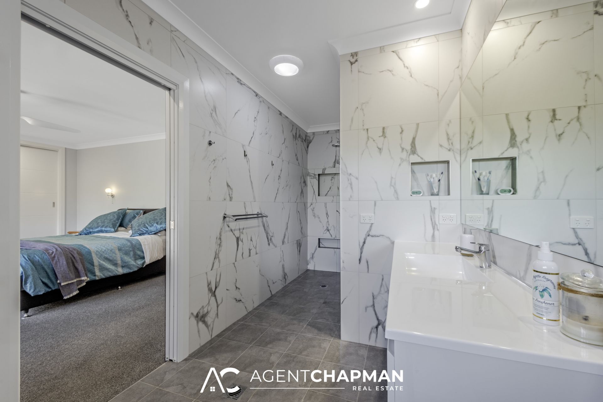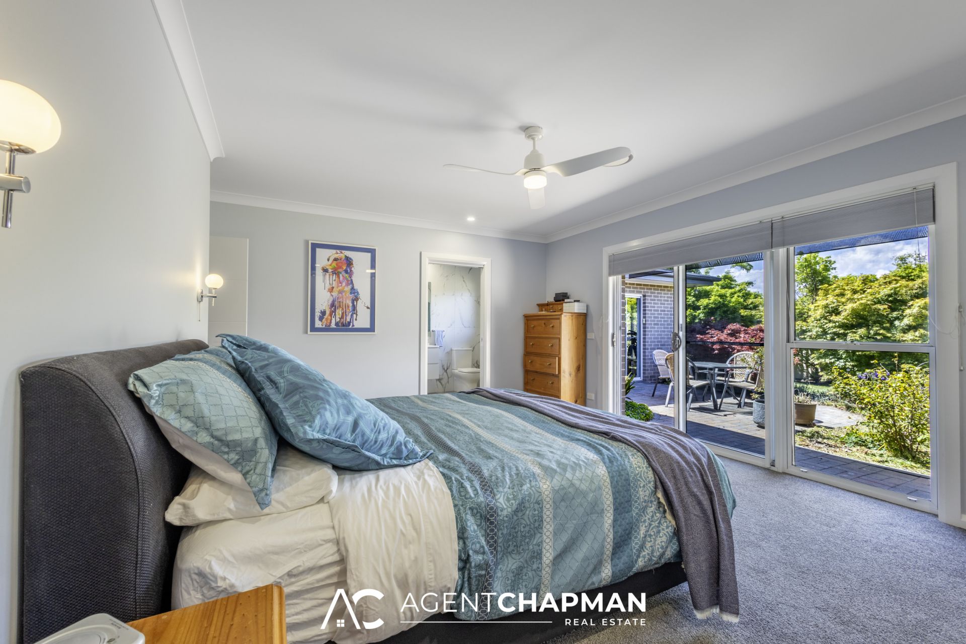 – Master bedroom features built-in robe, ceiling fan, modern ensuite with under-floor heating and direct access to private courtyard.