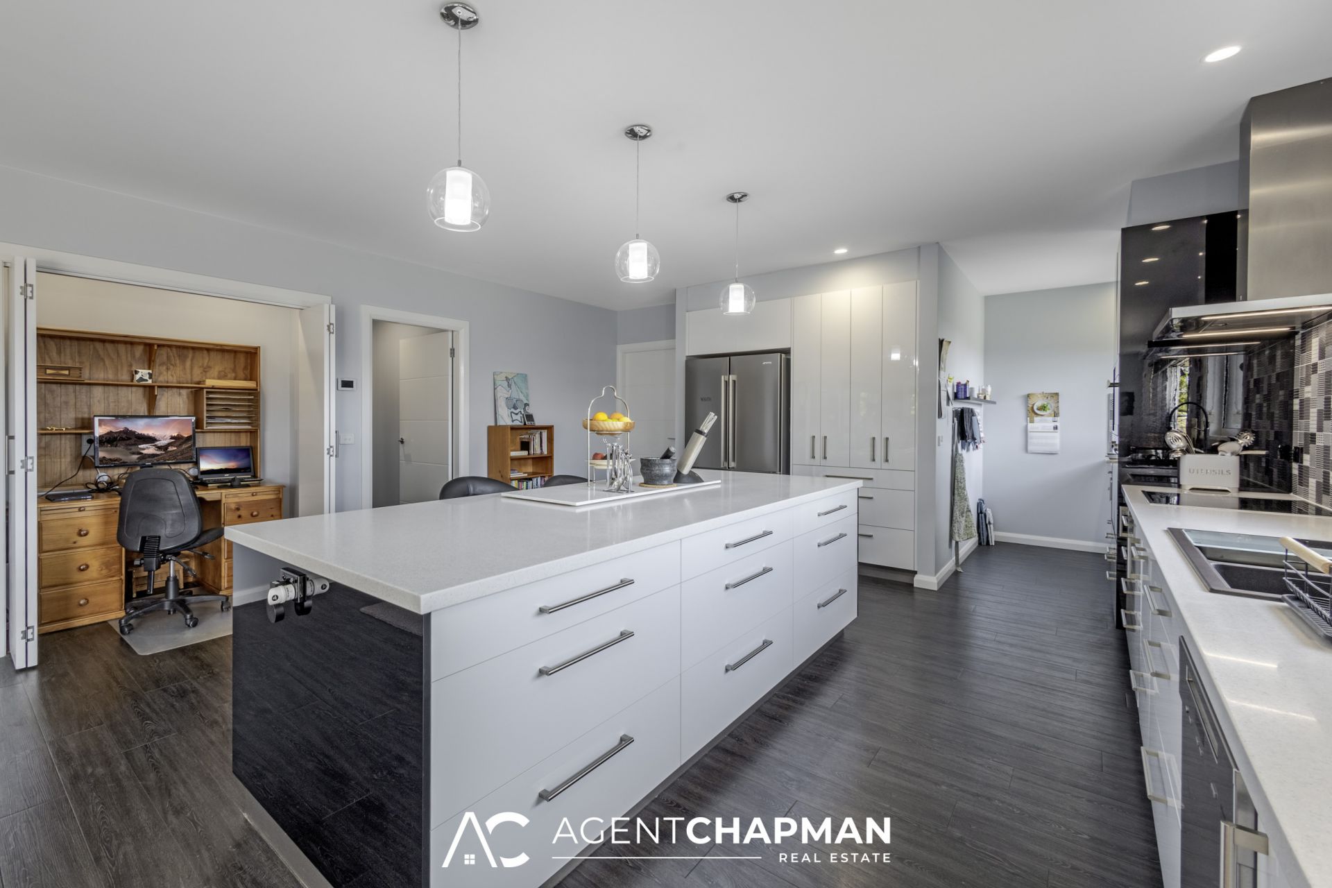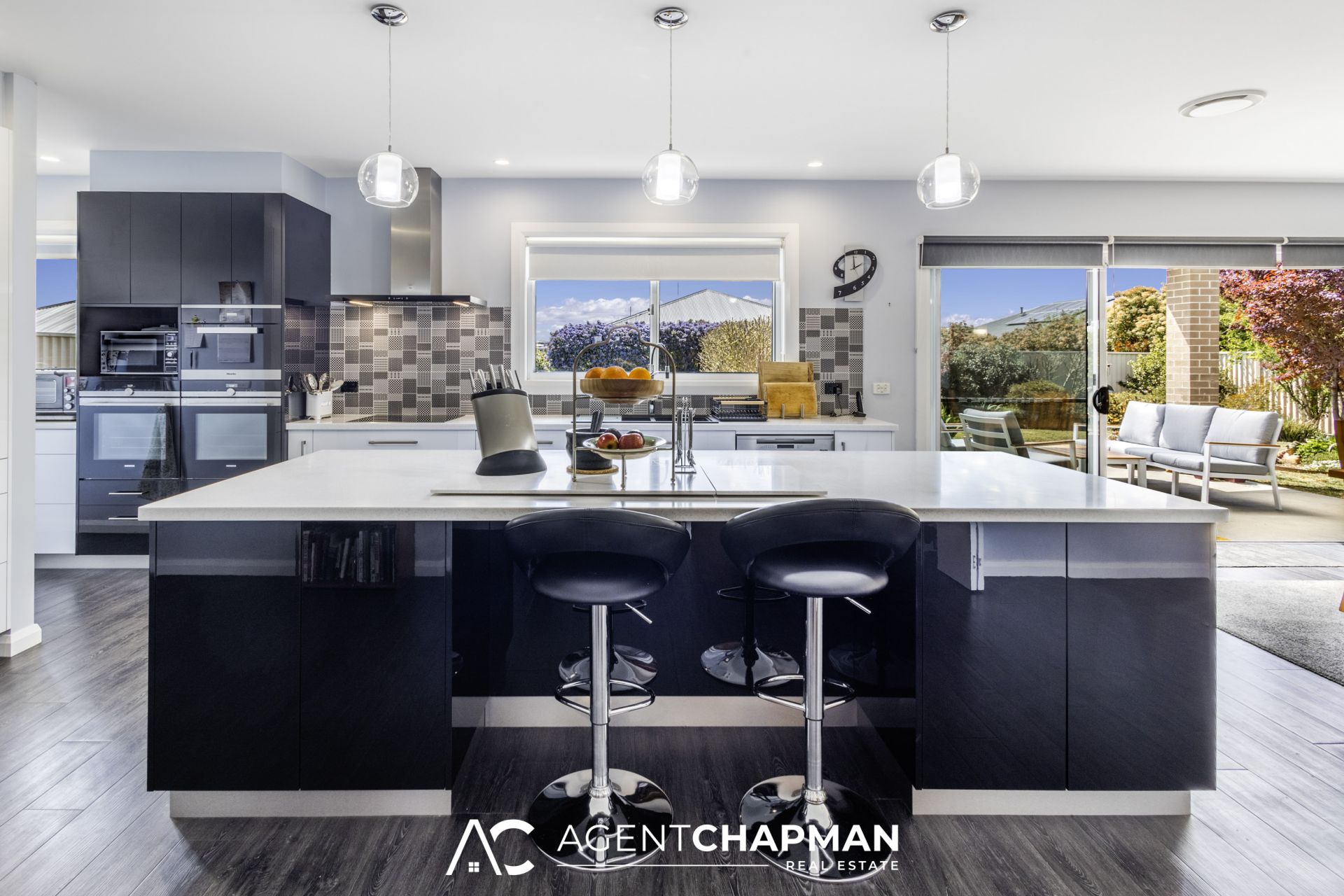 – High-end kitchen features Miele induction cooktop, dishwasher and steam oven, Siemens ecoclean and pyrolytic ovens, ducted rangehood and huge island bench with extensive soft-close storage.
