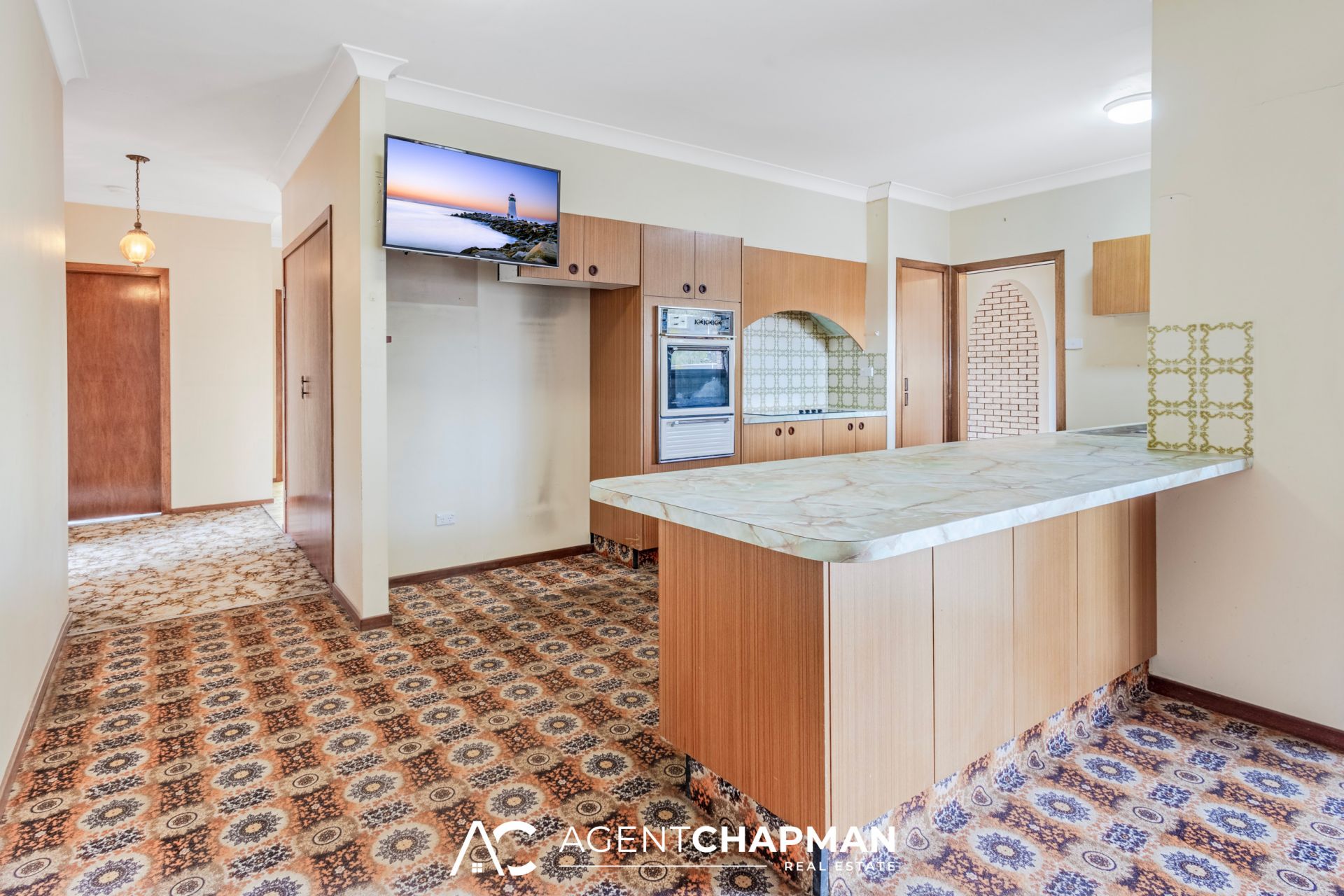 * Generous kitchen with electric cooking, ample storage space and breakfast bar.